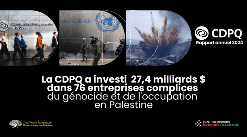 Au cours de l’année 2024, les investissements de la CDPQ dans 24 entreprises militaires complices du génocide à Gaza ont augmenté de 60%, passant de 2 à 3,4 milliards $.